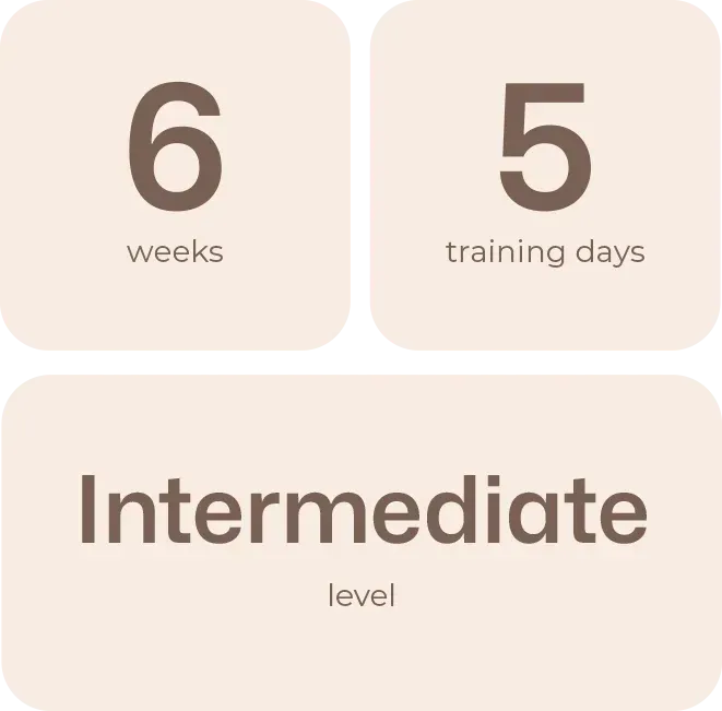 - Combines heavy lower-body, upper-body sculpt, and targeted core training each week